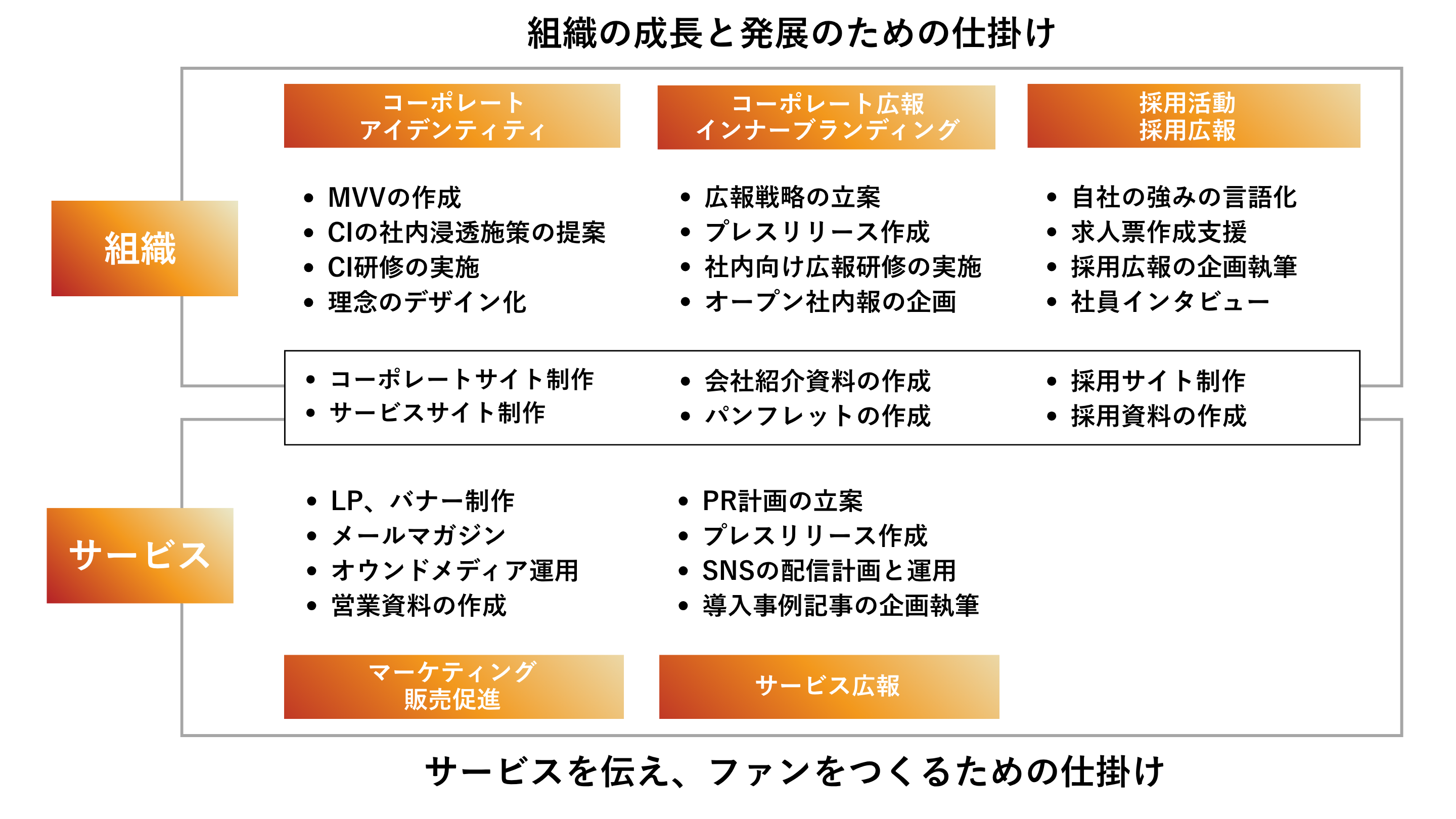 ROOTWITHでは、コーポレートブランディングと、そこに紐付く採用定着のための企画を得意としています。